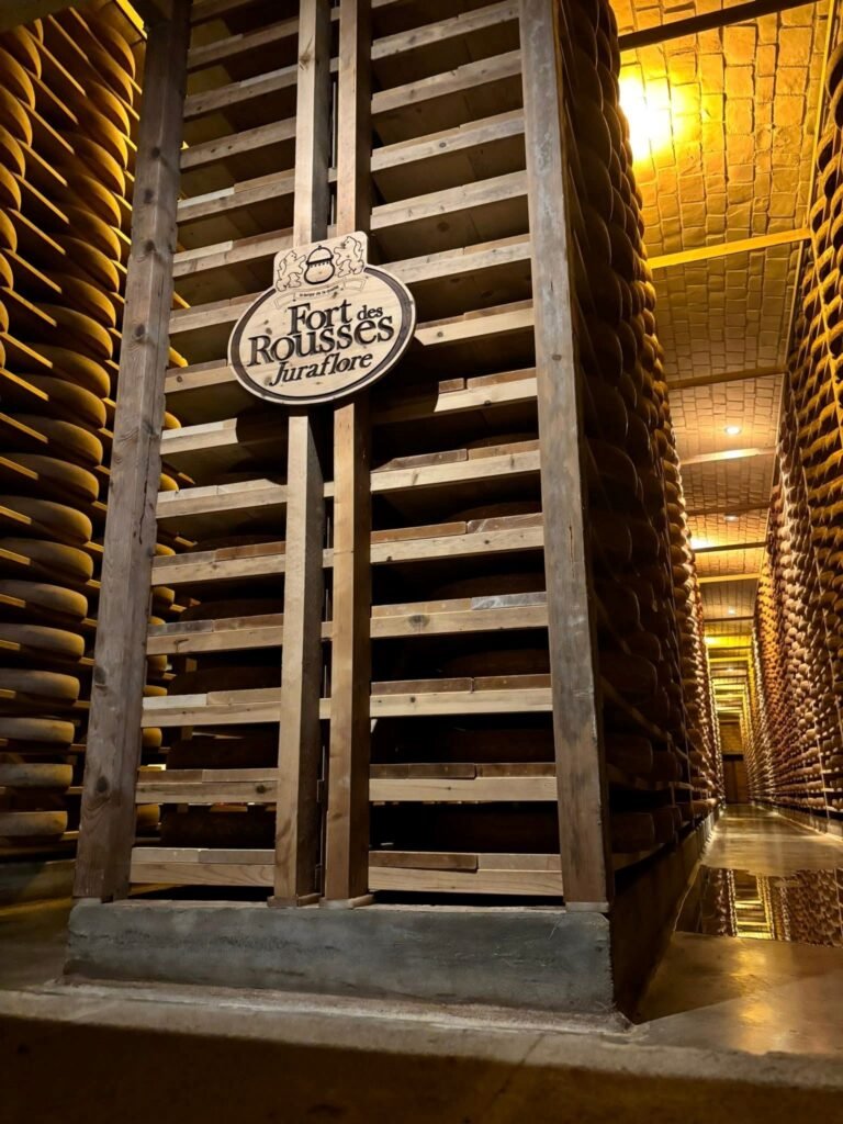 The event took place at Juraflore – Fort des Rousses, a cheese factory famous for its Comté cheese. JuraFlore Comtés are described as having fruity and toasted / roasted notes (“fruité et torréfié”), hints of almonds, butter, maybe spices, citrus depending on age. As the cheese ages longer, these flavors deepen.